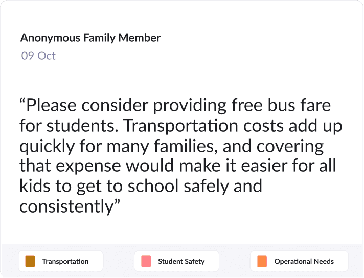 Bridge the gap between families and schools by uncovering patterns in parent feedback, improving trust, transparency, and engagement at every level.